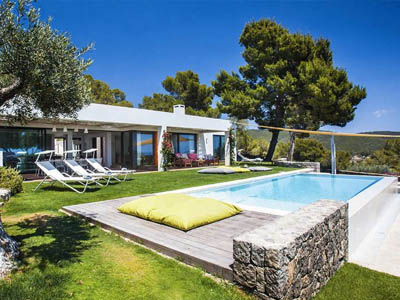 Cette propriété moderne et chaleureuse offre une vue imprenable sur la mer et se trouve à proximité d’un certain nombre de plages magnifiques, notamment Cala Tarida et le Cotton Beach Club.